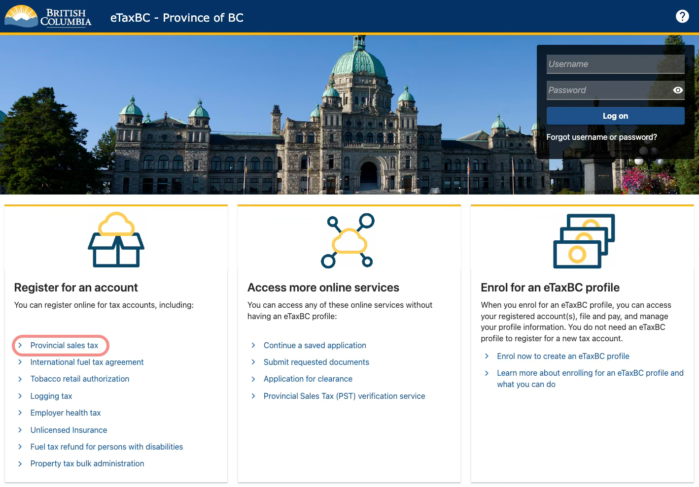 - An eTaxBC account to manage your BC PST or EHT account online.
