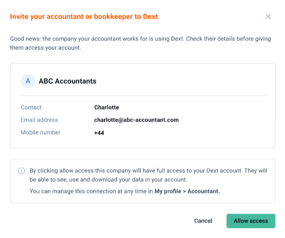 That's it! We should receive an invite to join your Dext account as an accountant once the above steps are complete, and we can get things moving 🥳