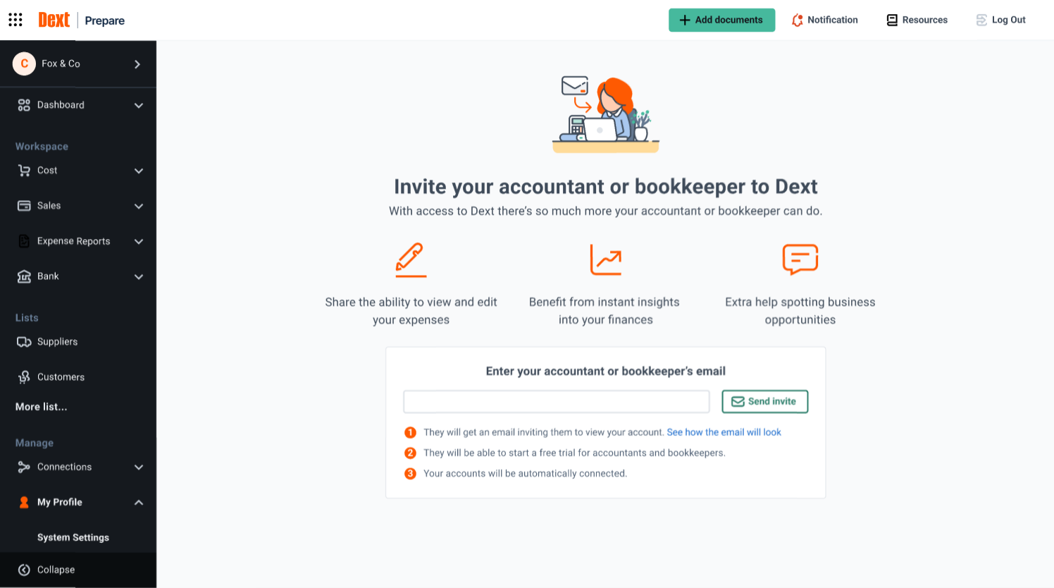 In order for the Agile team to have access to your Dext account, we need to be added as an Accountant User.